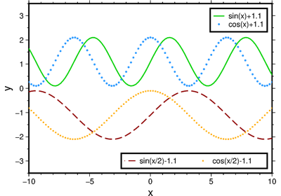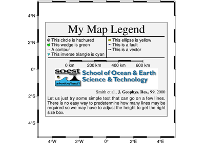 Makes legends that can be overlaid on plots. It reads specific legend-related information from an input file, a io.StringIO object, or automatically creates legend entries from plotted symbols that have labels. Unless otherwise noted, annotations will be made using the primary annotation font and size in effect (i.e., FONT_ANNOT_PRIMARY).